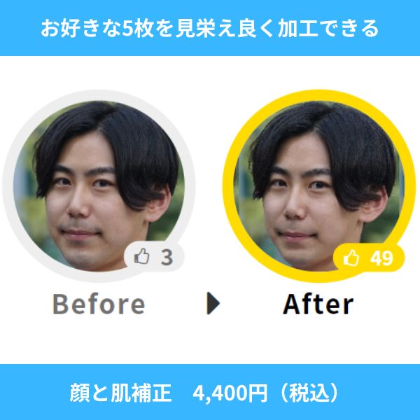 ※ニキビ・シワ・輪郭などの「顔・肌補正」はオプション追加が必要です。