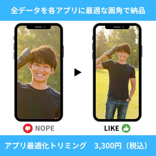 本プランは、撮影データを各マッチングアプリの最適サイズにトリミングするオプションプランです。