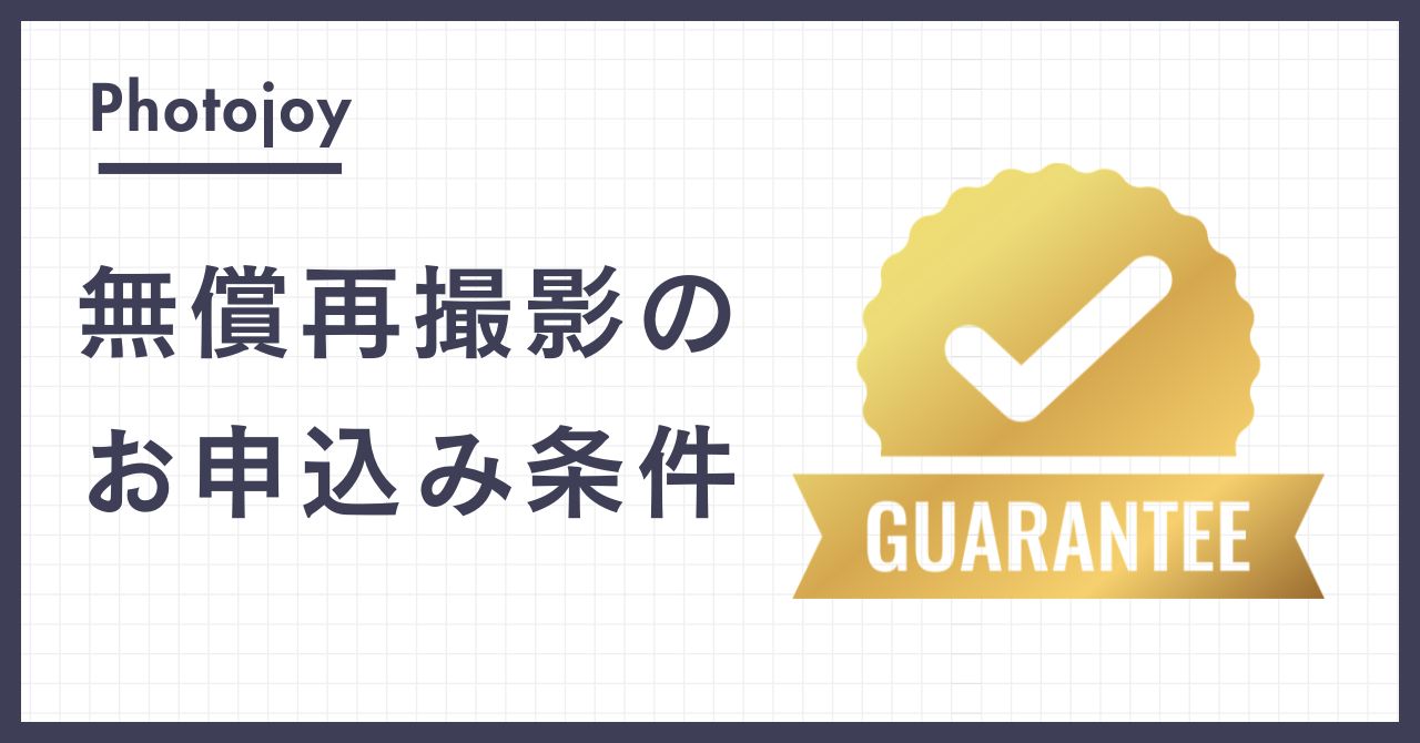 Photojoyでは、撮影後にマッチングができなければ無償で再撮影をさせていただきます。適用には以下の条件を満たす必要がありますので、必ずご確認ください。