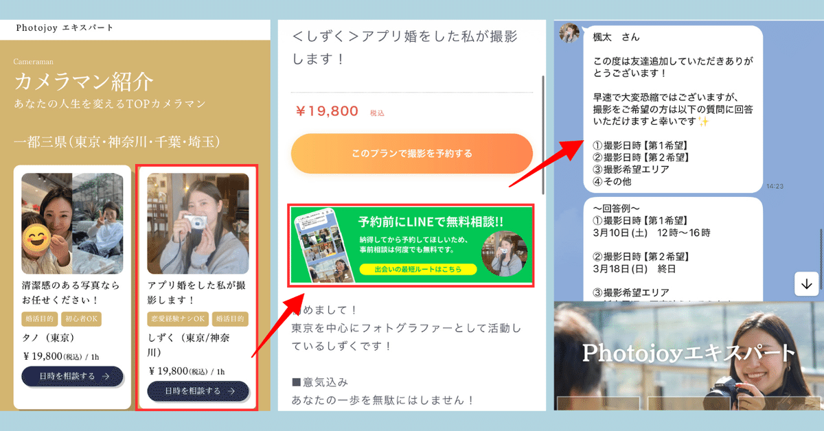 Photojoyエキスパートのご予約の流れは以下の通りです。